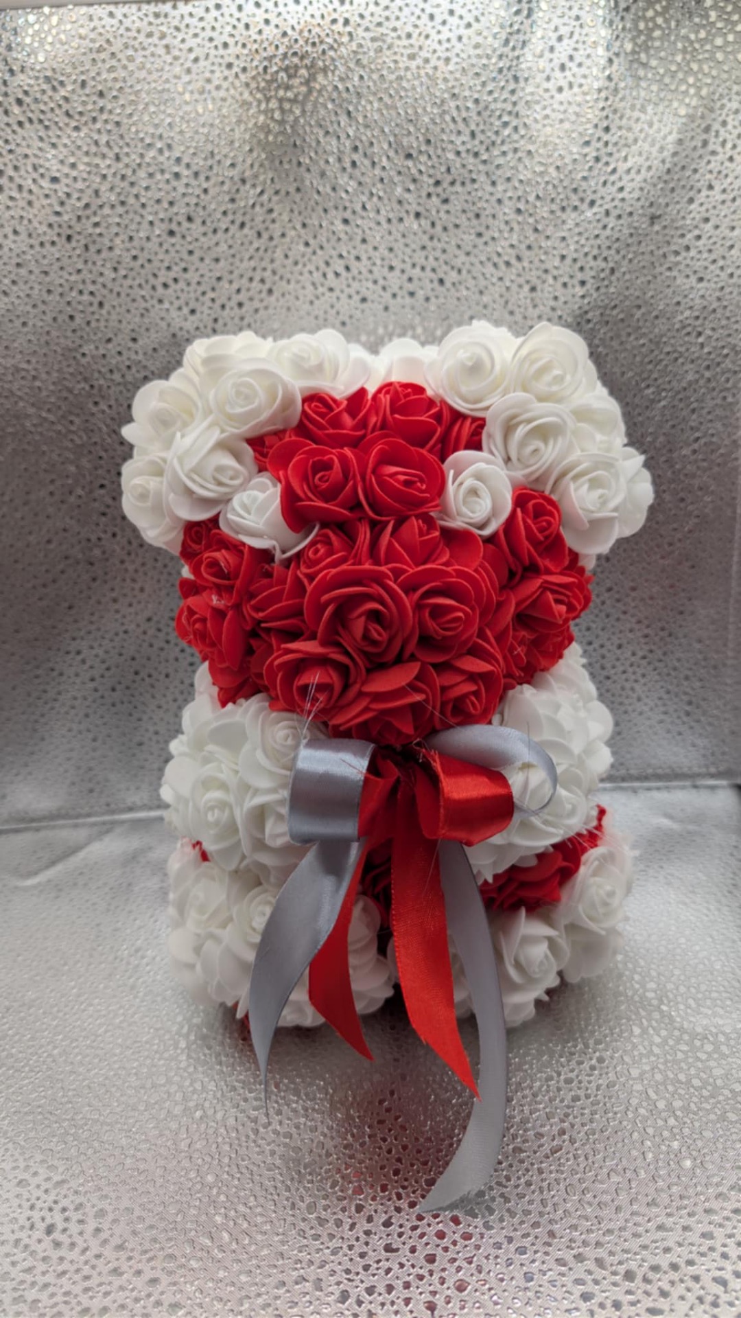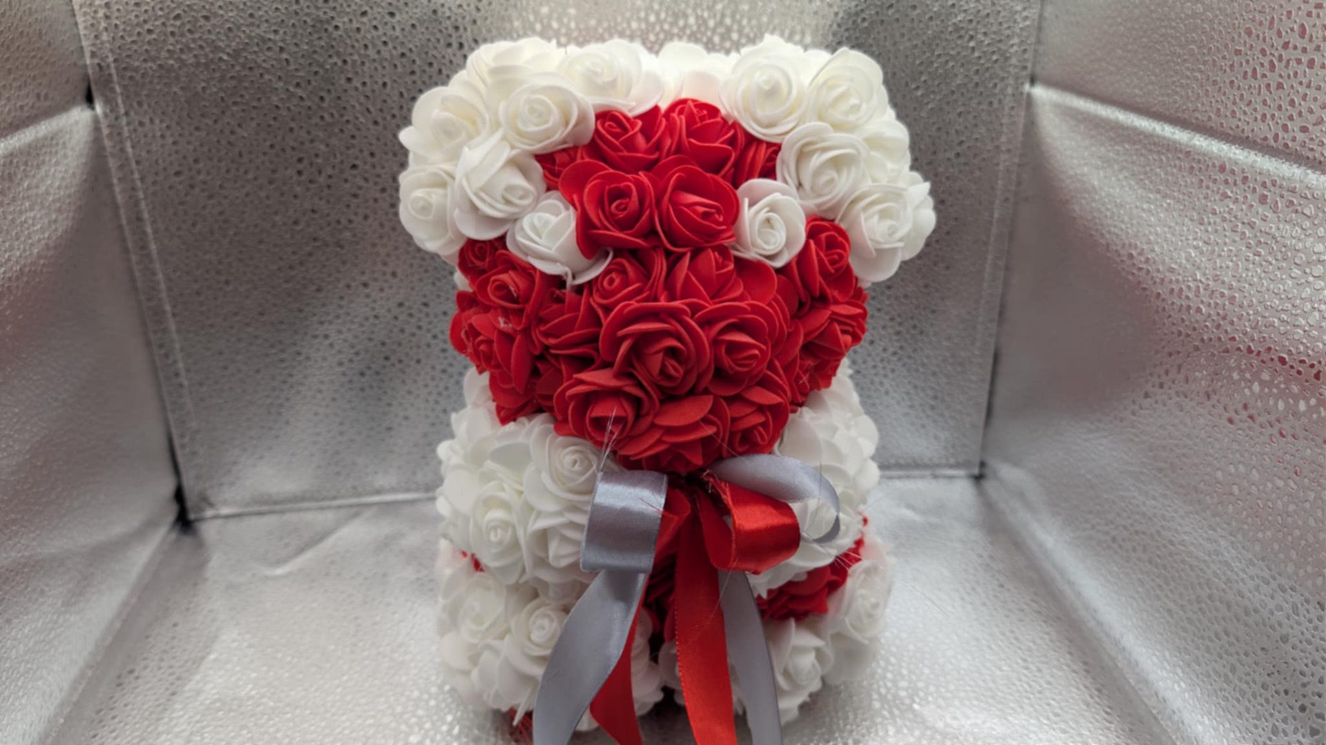 Medvidek z pěnových růžiček.